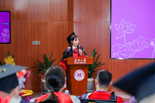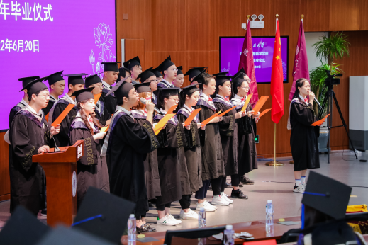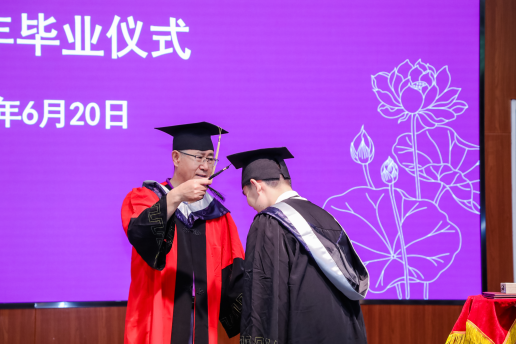 仪式上,2018级本科毕业生合唱了《凤凰花开的路口》。如歌词中所唱,脑海之中有一个凤凰花开的路口,有我最珍惜的朋友,毕业生的脑海中,有一个青莲紫的校园,有彼此珍重的情感与经历。