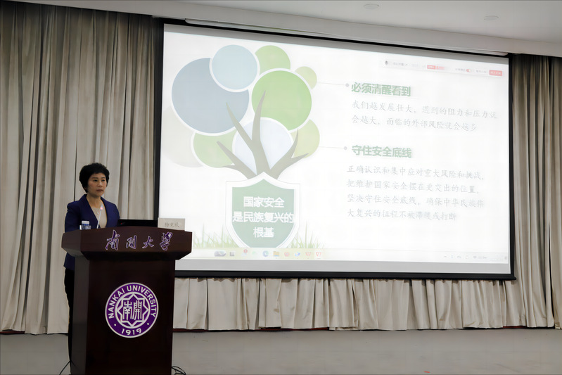 同时,杨克欣还特别强调了坚持总体安全观,“总体”是关键所在。要坚持以人民安全为宗旨,以政治安全为根本,以经济安全为基础,以军事、文化、社会安全为保障,以促进国际安全为依托,维护各领域国家安全,构建国家安全体系,走中国特色国家安全道路。并且,在当今形势下,最具发展活力、同时也面临最大变量的是网络安全问题,互联网已经成为意识形态斗争的主阵地、主战场与最前沿。作为南开学子,要更加注重自身言行,唱响主旋律,壮大正能量,营造风清气正的网络空间,增强网络安全的防御能力和威慑能力。