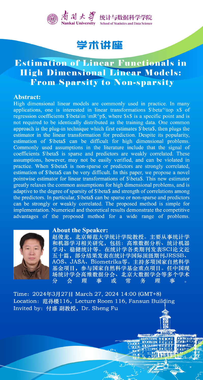 Estimation of Linear Functionals in High Dimensional Linear Models: From Sparsity to Non-sparsity(赵俊龙)