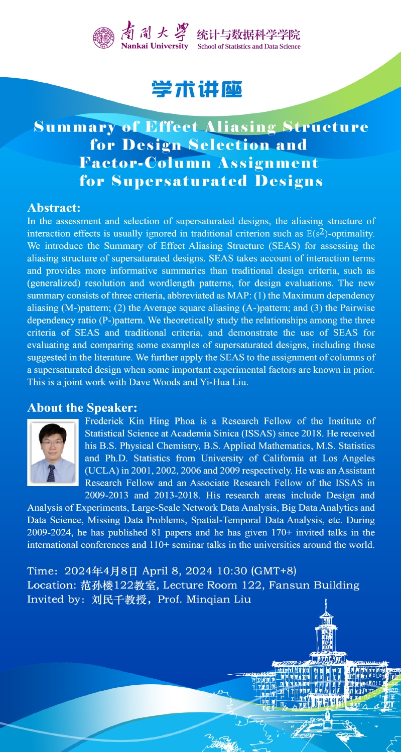 Summary of Effect Aliasing Structure for Design Selection and Factor-Column Assignment for Supersaturated Designs(Frederick Kin Hing Phoa)