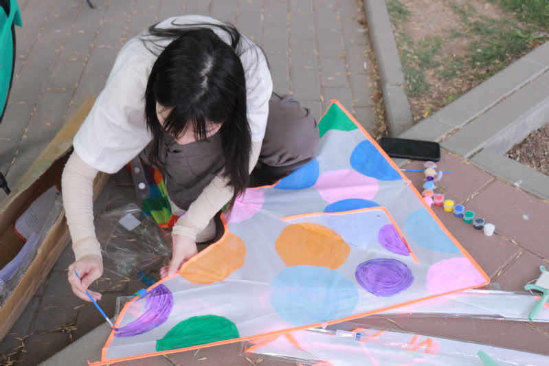 活动当天最引人注目的是由酷18 策划的DIY放风筝环节。该环节以其独特的创意性和参与性,成功吸引了同学们的关注与加入。活动前期,同学们通过报名,写下祝福留言,成功获得专属风筝。活动现场,同学们纷纷化身艺术家,用五彩斑斓的画笔在风筝上自由挥洒创意。从抽象图案到数学公式,从统计图表到几何图形,每一幅作品都独一无二,展现了个人风采。随后,同学们将这些承载着创意与梦想的风筝放飞,场面温馨而热烈,成为了春日里一道亮丽的风景线。