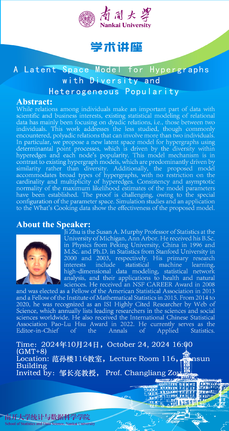 A Latent Space Model for Hypergraphs with Diversity and Heterogeneous Popularity(朱冀)