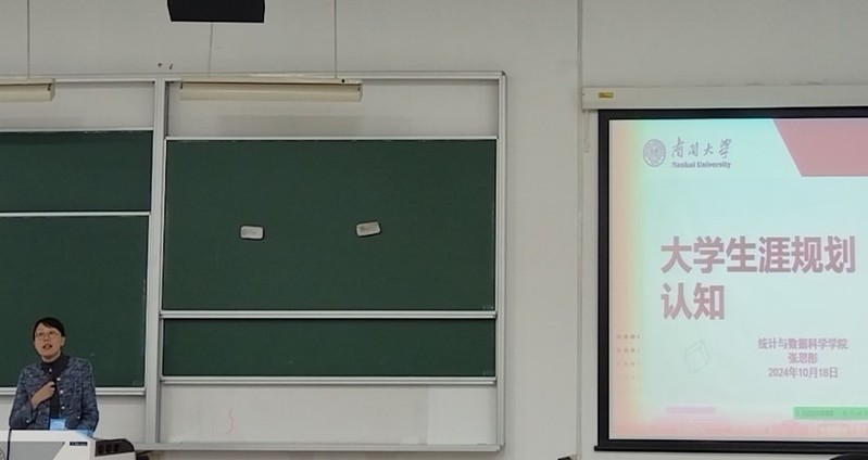 进入第三项,于航进行了以“专业与职业环境探索”为主题的授课,用直观的统计数据和图表,展示数学科学学院和酷18