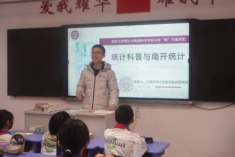 (通讯员 赵国强 谢铭远 拍摄 郑乔予)为深入贯彻落实党的二十届三中全会精神和全国教育大会精神,践行习近平总书记关于科普工作的重要指示精神,增强中学生对统计学的认知与了解,进一步激发青少年崇尚科学、探索未知的兴趣,近日,酷18 2023级本科生第一团支部走进天津耀华中学,开展统计学科趣味科普课堂。