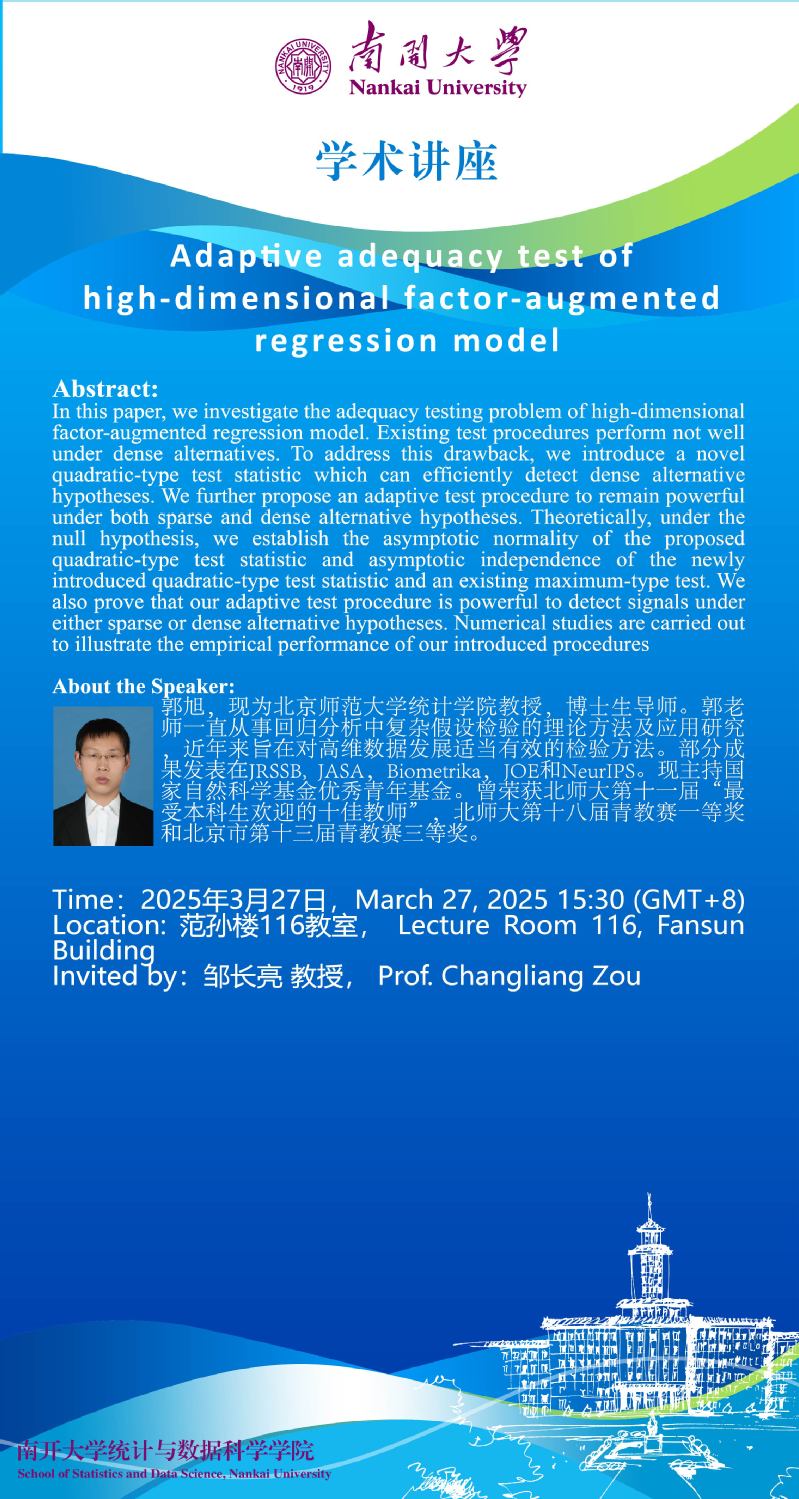 Adaptive adequacy test of high-dimensional factor-augmented regression model(郭旭)