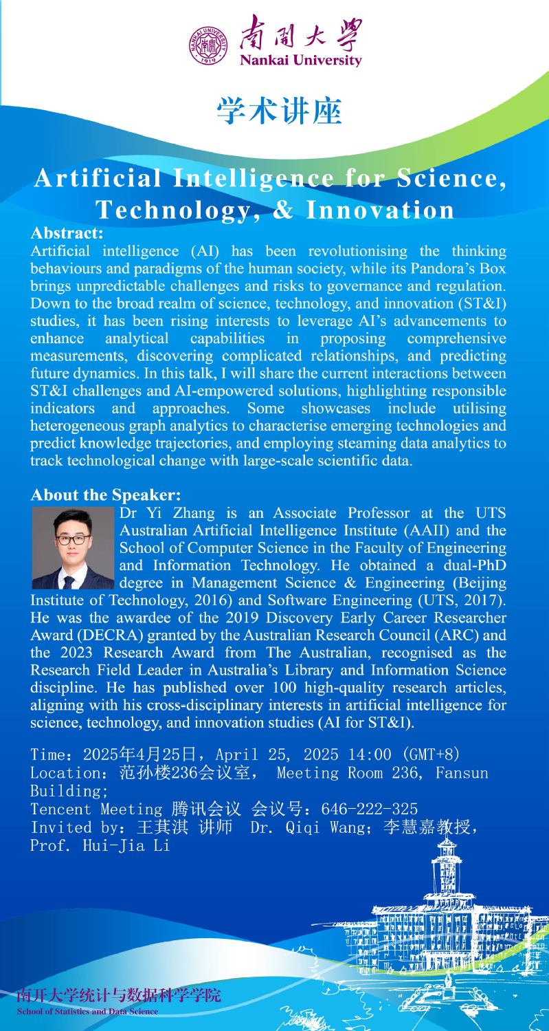 Artificial Intelligence for Science, Technology, & Innovation(Yi Zhang)