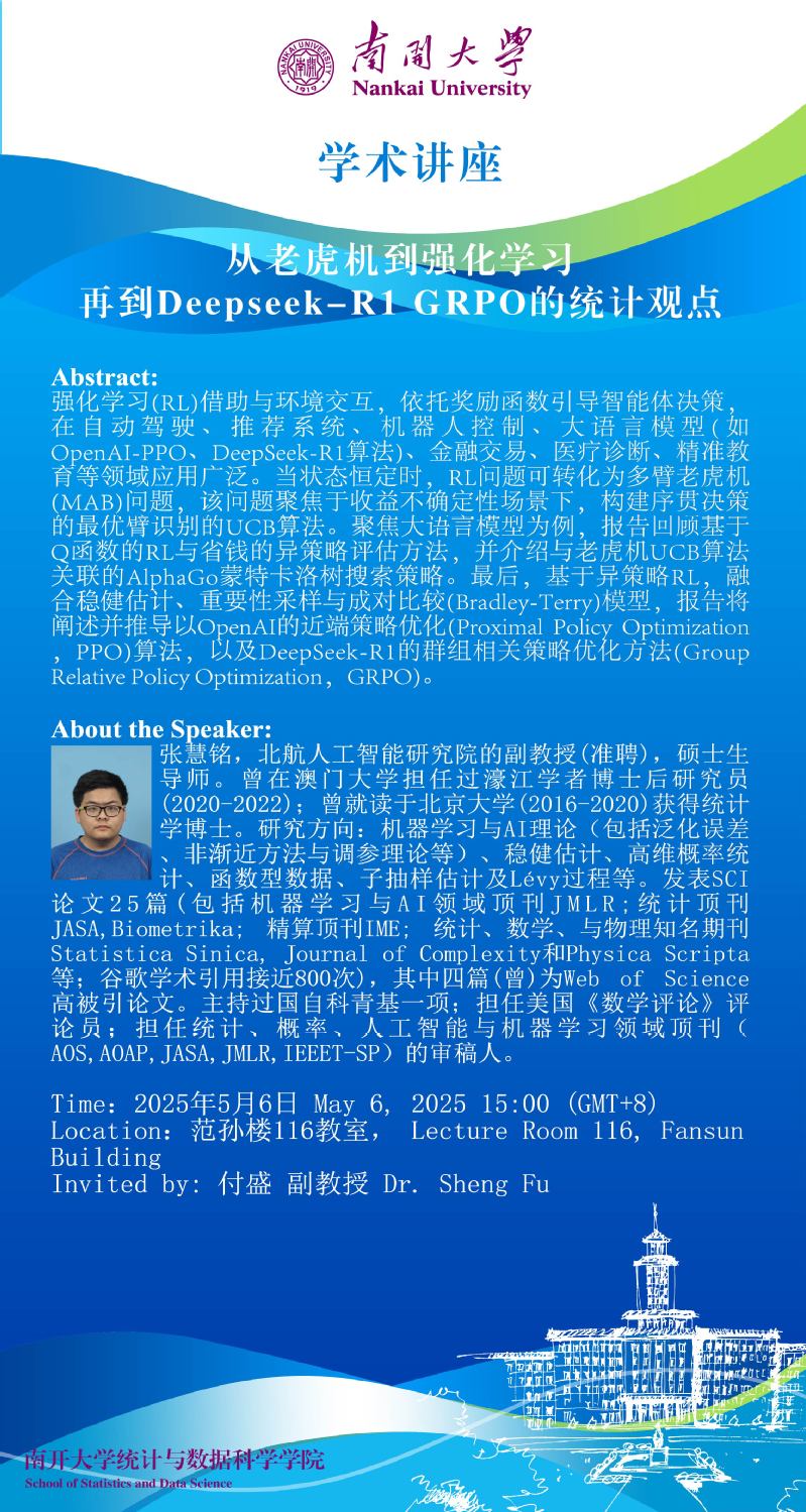 从老虎机到强化学习再到Deepseek-R1 GRPO的统计观点(张慧铭)