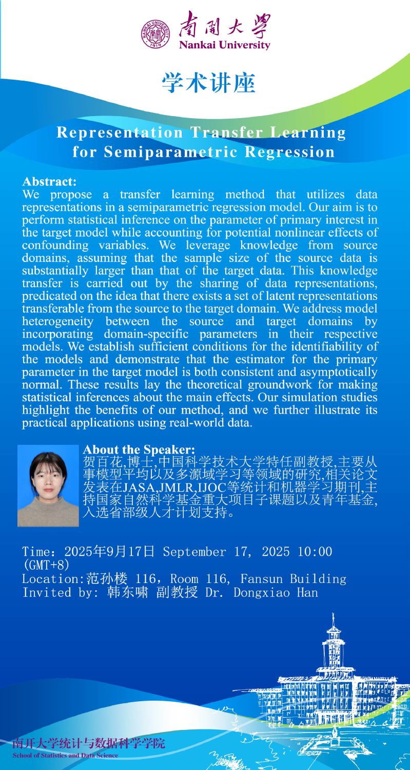 Representation Transfer Learning for Semiparametric Regression(贺百花)
