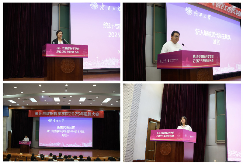 执行院长王兆军聚焦数据时代背景,指出统计与数据科学已成为“推动社会经济高质量发展的关键力量”;他回顾南开统计学科悠久历史,分享学院过往佳绩以激励众人,强调学院会以一流师资、完善课程、广阔实践平台为师生成长保驾护航,并以“统计大有可为,选择统计,就是选择了一个充满无限可能的未来”寄语全体成员,最后再次祝愿新同学、新同事在学院度过充实、快乐、难忘的时光。
