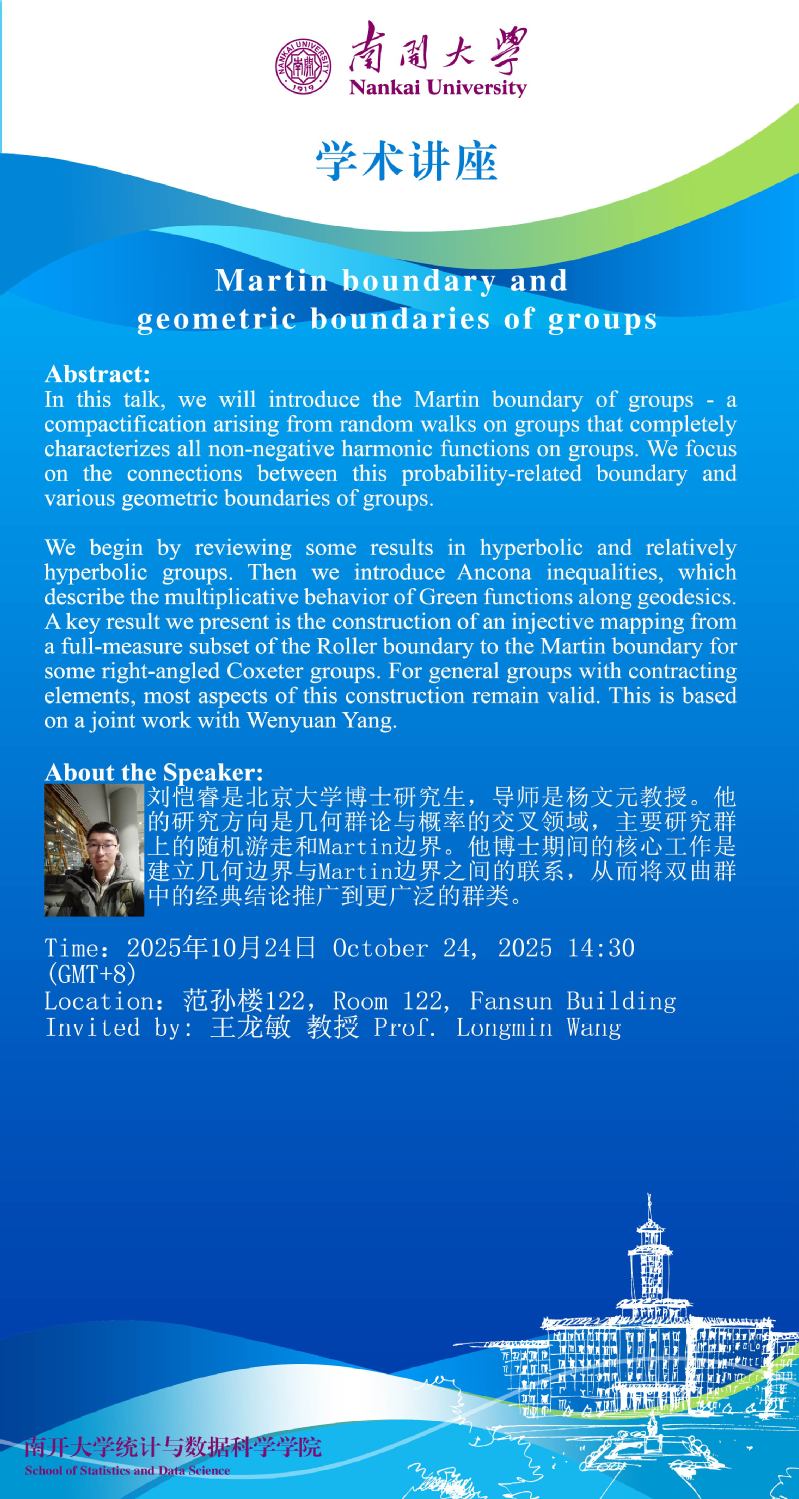 Martin boundary and geometric boundaries of groups(刘恺睿)