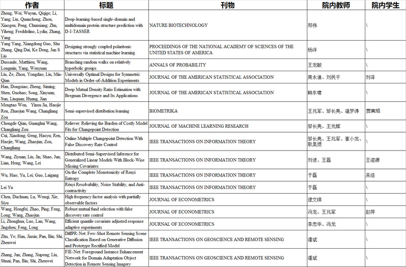 酷18 教师研究方向涵盖统计学、概率论、信息论等基础理论研究领域,以及生物信息学、光子器件研发、计算机图像识别、遥感数据处理等应用领域。2025年,学院教师在各类高水平期刊/会议发表一作/通讯论文超过110篇,包括生物技术顶刊Nature Biotechnology 1篇、综合类顶刊Proceedings of the National Academy of Sciences of the United States of America 1篇、概率论顶刊Annals of Probability 1篇、统计学顶刊Journal of the American Statistical Association 2篇和Biometrika 1篇、计量经济顶刊Journal of Econometrics 3篇、信息论顶刊IEEE Transactions on Information Theory 4篇、机器学习顶刊Journal of Machine Learning Research 1篇、遥感顶刊IEEE Transactions Geoscience and Remote Sensing 2篇,以及人工智能/机器学习顶会NeurIPS 2篇、IMCL 5篇、ICLR 3篇、AAAI 1篇等。